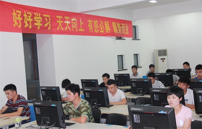 7月4日晚,歙縣青創職業學校電教室內燈光明亮,參加全縣退役士兵職業技能培訓班的小伙子們精神抖擻、興致盎然,“好好學習 天天向上 有惑必解 順勢而業”的大紅標語也格外醒目。學員們在白天理論教學的基礎上,利用晚上進行上機實際操作,鞏固提升所學知識,相得益彰。看,他們學得多認真啊!