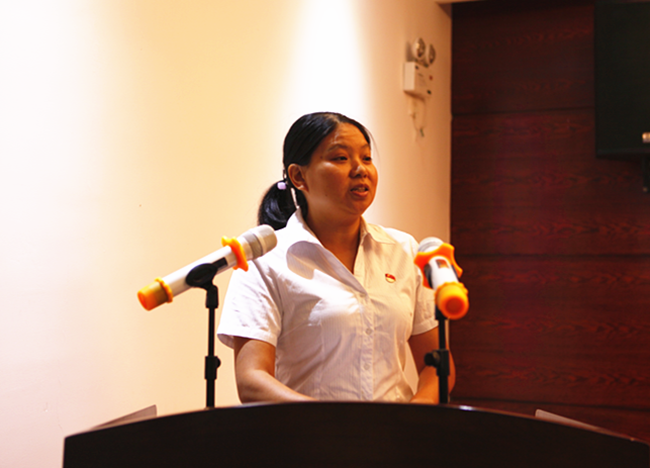 員工代表卓敏結合自己在金信的工作經歷,向大家分享了辛苦努力和快樂成長的點滴。