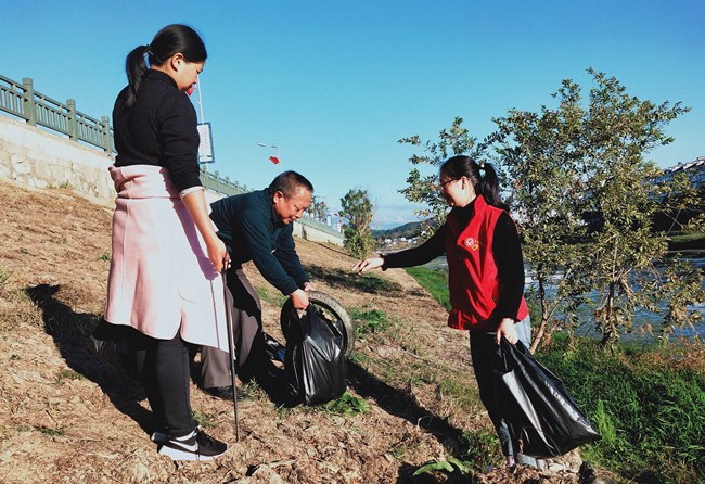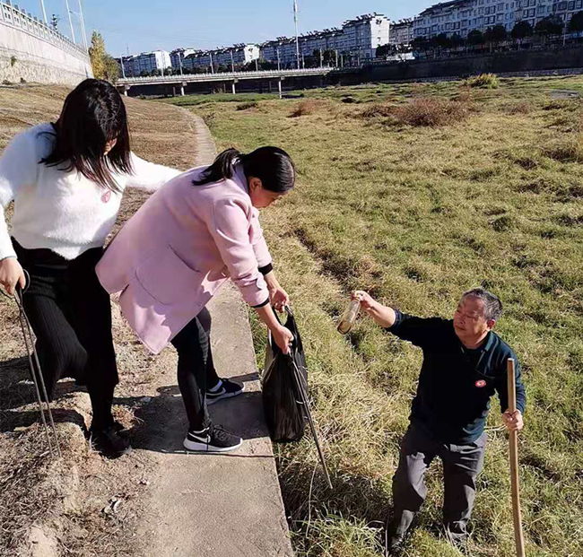 活動當日,我公司支部黨員與縣昌仁醫院支部、愛樂藝術學校支部黨員30余人,圍繞“彎腰10秒,拾起文明”的響亮口號,借助鋤頭、鐵鍬、火鉗、垃圾袋、竹竿等工具,沿著新安江畔撿散落的生活垃圾,撈取江面漂浮物,向江邊商戶宣傳生態環保垃圾分類處理知識黨員的模范帶頭行動,影響更多的群眾參與到保護我們的母親河——新安江活動中來