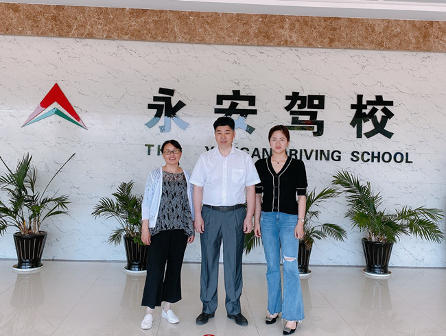 [上圖為財稅部李霞娟經理(左)、會計杜思惠(右)與走訪對象——永安駕校總經理許美良(中)合影。]