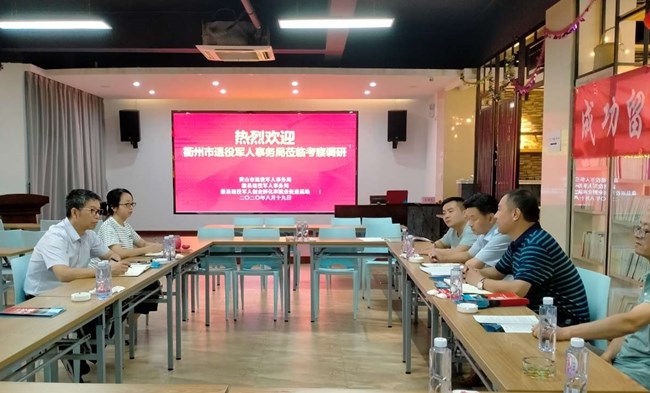 兩地退役軍人事務(wù)局就退役安置、就業(yè)培訓(xùn)的主題進(jìn)行了深入細(xì)致交流,友好座談。我基地負(fù)責(zé)人胡海鋒詳細(xì)介紹了自己參軍入伍、退役后工作、創(chuàng)業(yè)奮斗的過程,以及謀劃、建設(shè)歙縣退役軍人創(chuàng)業(yè)孵化和就業(yè)促進(jìn)基地的主要情況,得到衢州市退役軍人事務(wù)局領(lǐng)導(dǎo)的贊賞和肯定。雙方表示,將互相學(xué)習(xí)、取長(zhǎng)補(bǔ)短,促進(jìn)各自退役軍人工作上新臺(tái)階。