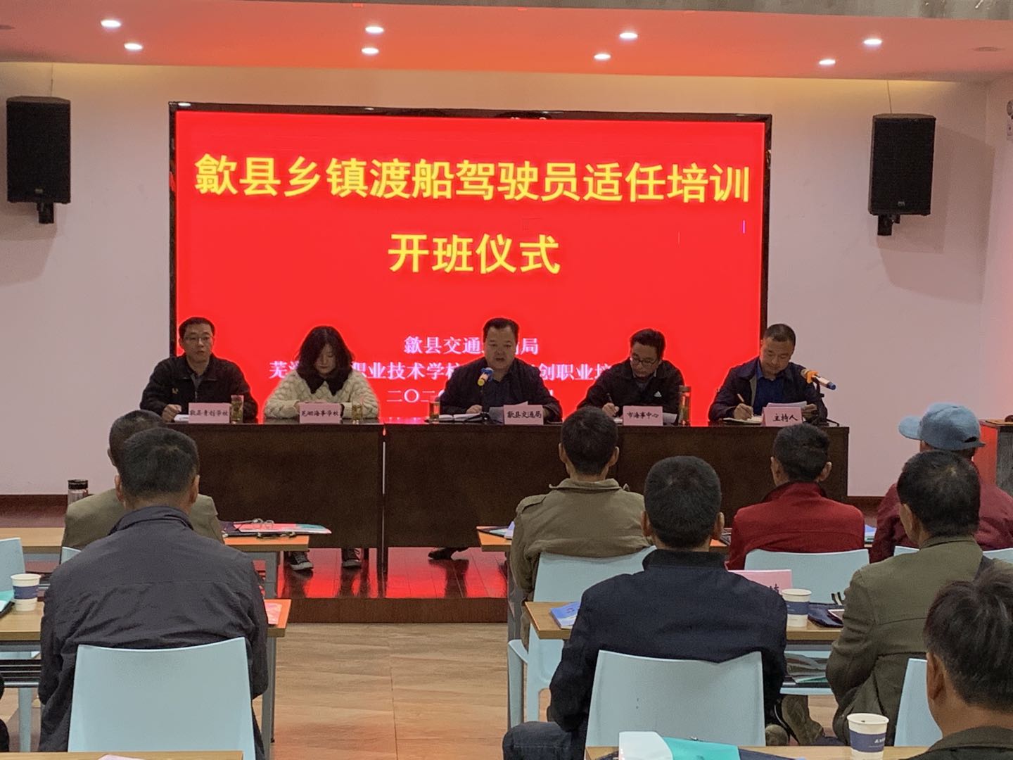 2020年11月4日,由歙縣交通運輸局主辦,蕪湖海事職業(yè)技術(shù)學校、歙縣青創(chuàng)職業(yè)培訓學校承辦的“歙縣鄉(xiāng)鎮(zhèn)渡船駕駛員適任培訓”在我中心順利開班。歙縣小川、坑口、新溪口、王村、徽城、雄村、武陽、深渡等8個鄉(xiāng)鎮(zhèn)共21名渡船駕駛員培訓對象參加開班儀式。黃山地方海事(港航)管理服務(wù)中心葉春明副主任、歙縣交通運輸局副局長馮興根到會并作重要講話。