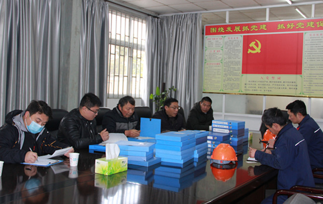 (上圖為檢查小組查看華邦公司安全生產檔案,并向企業反饋檢查意見。)