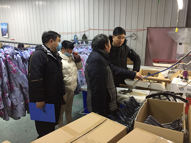 (上圖為富堨鎮政府副鎮長朱超(中)帶隊在華邦公司車間檢查。)
