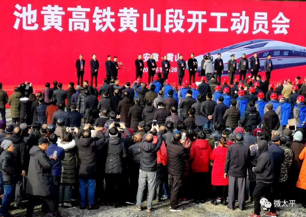 (上圖為2019年12月28日,池黃高鐵黃山段開工儀式在黃山市黃山區甘棠鎮舉行。)