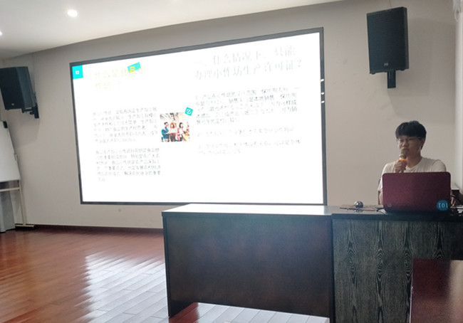 方金銘是經(jīng)濟業(yè)務(wù)部成員之一,日常主要負責(zé)企業(yè)證照辦理、變更等工作。他性格開朗樂觀,工作認真細致,積極上進。此次分享他主要結(jié)合自身辦理的小作坊登記證流程,先對小作坊做了簡單介紹、隨后圍繞辦理證件的所需條件、所需材料、注意事項等幾個方面進行詳細講解,經(jīng)過方金銘的講解,大家對小作坊企業(yè)有了更加深入的了解和認知,對國家食品生產(chǎn)監(jiān)管、此類業(yè)務(wù)辦理有了更好的掌握,有助于提升為客戶服務(wù)的專業(yè)水平。