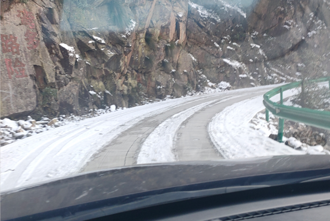 (上圖為徽州天路——白際段積雪的路面)