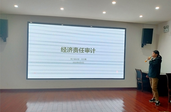 何志霞副經理從事會計工作多年,有著豐富的工作經驗,特別是在經濟責任審計方面,業務突出,經常受到相關政府領導的贊賞與肯定。此次分享她主要圍繞“經濟責任審計”工作,從經濟責任審計的審計對象、審計內容、現場管理要點、現場相關附件、以及審計報告創新對比等內容進行詳細講解。經過何志霞副經理的用心介紹,使得參與人員對“經濟責任審計”有了更全面、深入的了解,有助于提升員工的綜合業務能力,更好的為企業提供服務。