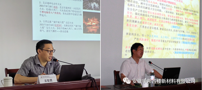 培訓(xùn)前,華邦公司總經(jīng)理、安委會主任胡江濤做了開場講話。他指出,安全無小事,“千里之堤,潰于蟻穴”,小的麻痹大意,在安全方面都可能帶來嚴(yán)重的不良后果,全體員工要珍惜此次培訓(xùn)機(jī)會,通過培訓(xùn)要進(jìn)一步加強(qiáng)公司的安全文化建設(shè),提高全員安全意識,改進(jìn)安全意識和行為,真正實(shí)現(xiàn)從“要我安全”到“我要安全”,從“我要安全”到“我會安全”的意識轉(zhuǎn)變,杜絕各種習(xí)慣性違章行為,從而達(dá)到安全生產(chǎn)的最終目的。